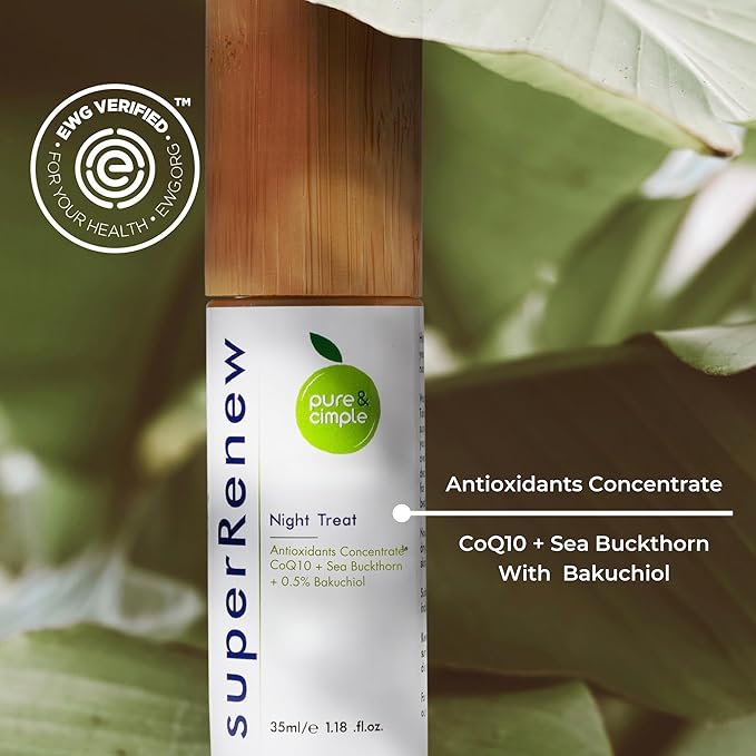 superRenew Retinol Alternative Organic Face Oil - Bakuchiol Night Oil with Sea Buckthorn, CoQ10, Squalane, Rosehip - Hydrating Anti-Aging Oil for Dry, Mature, Sensitive Skin (35ml)